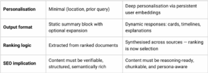 SEO once focused on optimizing pages for a query, but with generative search we now have to optimize for a space that is hyper personalized, intent-first, multi-query, and reasoning-driven. AI Overviews and AI Mode are built and work differently to traditional Google search.