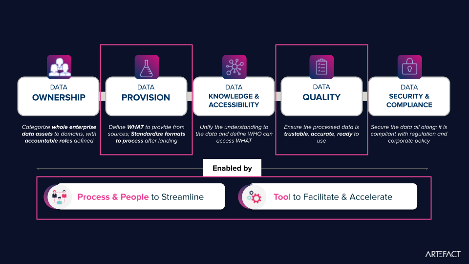 Among these, data provision and data quality are particularly critical. They determine whether governance can be implemented effectively and directly influence decision-making efficiency and the success of AI applications.